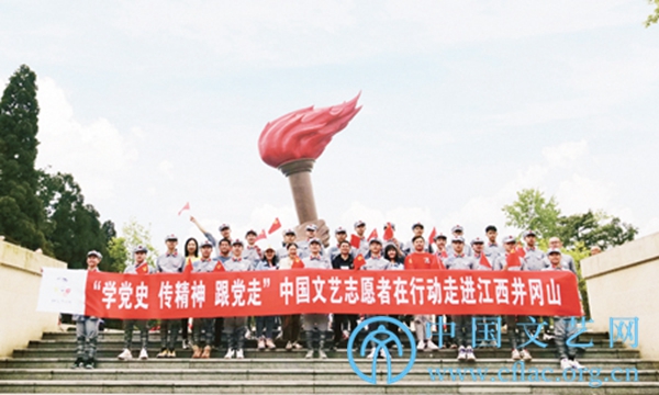 2021年,中国文联、中国文艺志愿者协会以“六级联动”的形式开展“学党史传精神跟党走”中国文艺志愿者在行动活动,图为文艺志愿者走进江西井冈山。