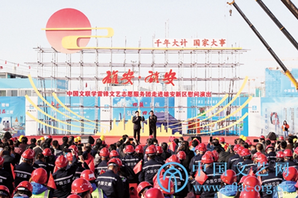 2020年11月,中国文联学雷锋文艺志愿服务团走进雄安新区容东片区雄安商务服务中心建设工地进行慰问演出。