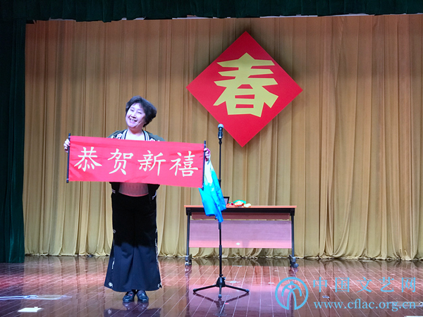 1月2日,2020年中国文联老同志新春团拜会在中国文艺家之家举办。图为中国杂协退休干部徐秋表演魔术《新年快乐》。中国文艺网 邱茗 摄