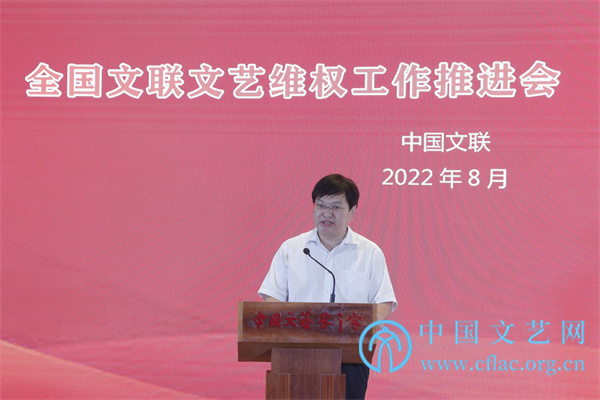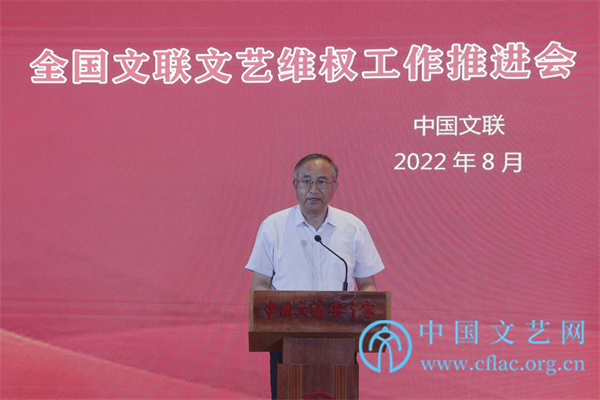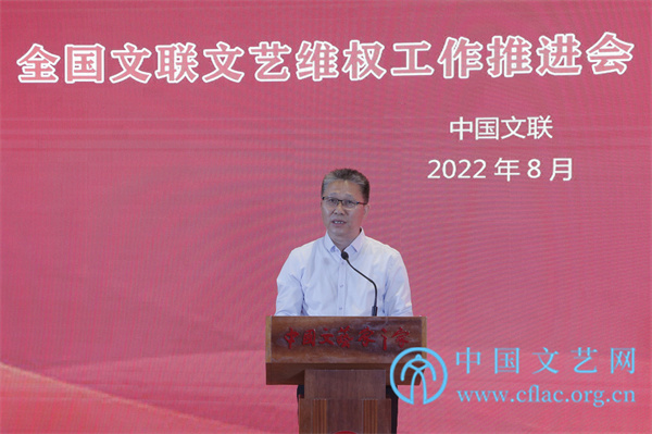 8月31日,全国文联文艺维权工作推进会以线上线下相结合的方式召开。图为中宣部版权管理局局长王志成发言。中国文艺网 高晴 摄