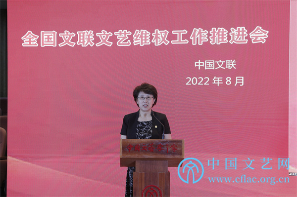 为深入学习贯彻习近平法治思想,维护广大文艺工作者权益,切实履行新时代文联组织自律维权新职能,8月31日,全国文联文艺维权工作推进会以线上线下相结合的方式召开。会议旨在以习近平法治思想为引领,学习贯彻习近平总书记在中国文联十一大、中国作协十大开幕式上的重要讲话精神,提高认识,明确思路,交流经验,部署工作,进一步推进2021年10月新修订印发《中国文联关于进一步加强文艺维权工作的指导意见》的贯彻落实,推动全国文联系统文艺维权工作全面发展。中国文联党组书记、副主席李屹出席会议并讲话。中国文联党组成员、书记处书记张雁彬、张宏,中宣部版权管理局局长王志成、中国文联权益保护部主任暴淑艳出席会议。会议由张雁彬主持。