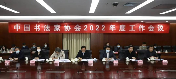 徐永军书记代表中国文联党组向广大书法工作者和书法爱好者致以诚挚问候。他在讲话中指出,过去的一年,中国书协勠力同心、团结拼搏、扎实工作,以案促改卓有成效,服务大局成果丰硕,引领创作坚强有力,志愿服务亮点突出,行风建设扎实推进,各方面工作都取得了新成效、新发展,书法界长期为人诟病的官气、商气得到明显改观,天朗气清的行业风气和山清水秀的书法生态正在形成。针对2022年工作,徐永军书记提出要求:要认清形势、明确方向,着力把学习贯彻习近平新时代中国特色社会主义思想引向深入,以真学促入脑,以真信促入心,以真用促入行;要提高站位、开拓进取,为党的二十大营造浓厚氛围,切实做到全国书坛同心同向、聚力用劲,形成“一盘棋”,拧成“一股绳”;要扎实工作、守正创新,着力加快完善书法人才队伍体系建设,通过引路子、扶梯子、搭台子、压担子、立典型,把“做人的工作”和“推进文艺创作”有机结合起来,努力打造一支“有信仰、有情怀、有担当、有水平、有影响”的书法文艺队伍;要强化担当、真抓实干,着力营造风清气正的书法业界生态,不断完善制度机制,加强自身纪律建设,引导广大书家承担社会责任。徐永军强调,2022年是党的二十大召开之年,是进入全面建设社会主义现代化国家、向第二个百年奋斗目标进军新征程的重要一年。切实做好书协系统的各项工作,具有十分特殊而又重要的意义。要充分认识到书法事业在新时代的重要使命和书协人肩负的政治要求,坚决服从和服务于党和国家的工作大局,努力发挥“组织优势”和“专业优势”,不断提高政治能力、学习研究能力、调研服务能力、创新发展能力,最大限度把书法界智慧和力量凝聚起来,最大限度把广大书法家和书法工作者的积极性、主动性、创造性激发出来,努力开创书法事业发展新局面。