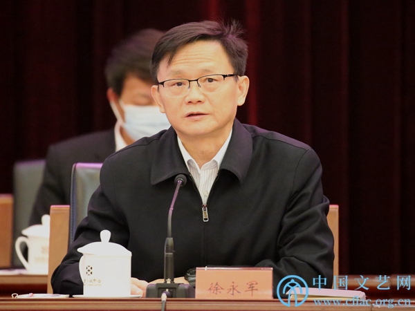 3月29日,中国文联十一届二次全委会第二次全体会议在京召开。图为中国文联党组成员、副主席徐永军就学习宣传贯彻十九届六中全会和第十一次文代会精神作辅导。