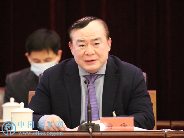 3月29日,中国文联十一届二次全委会第二次全体会议在京召开。图为中国文联党组成员、副主席俞峰通报中国文联全委会委员履职情况和工作要求。