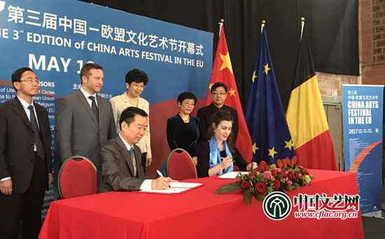 2017年5月18日晚,第三届中国-欧盟文化艺术节开幕式在欧盟总部布鲁塞尔圣米歇尔剧院举行。中国文学艺术界联合会副主席赵实、中国驻欧盟使团大使杨燕怡、欧中“一带一路”文化旅游发展委员会主席及欧洲议员伊什特万·威伊海依、中国-欧盟文化艺术节组委会主席朱莉·帕特森等200多位欧盟官员、欧盟国家文艺界人士应邀出席开幕酒会,期间见证了中国电影家协会与中国-欧盟文化艺术节组委会签署的中欧电影合作备忘录。开幕式上赵实、杨燕怡、伊什特万·威伊海依致辞,赵实宣布艺术节开幕。开幕式和演出现场气氛热烈,1200座的剧场全部爆满。