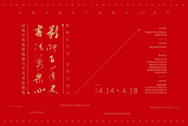 天翻地覆,正道沧桑。观百年于少顷,抚今昔以兴慨,激活红色记忆,传承红色基因,红色电影当是最为鲜活和便捷的途径之一。因此,在喜迎党的百年华诞之际,湖南省文联、湖南省电影局联合策划和组织了“影映百年史,书传万众心”经典红色电影海报与片名书法展览,百余幅电影海报映现党史,百余件书法传递敬仰,虽吉光片羽,亦足以表达电影人(影评人) 和书法家们的一份虔敬,一片至诚!