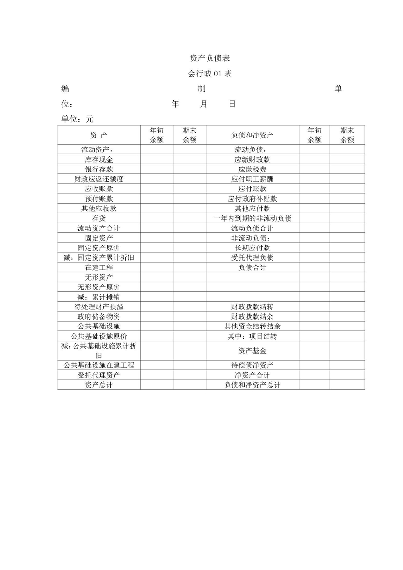 (三)行政单位按月编制资产负债表的,应当遵照以下规定编制: