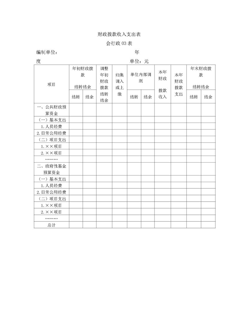 (一)本表“项目”栏内各项目,应当根据行政单位取得的财政拨款种类分项设置;其中“项目支出”下,根据每个项目设置;行政单位取得除公共财政预算拨款和政府性基金预算拨款以外的其他财政拨款的,应当按照财政拨款种类增加相应的资金项目及其明细项目。