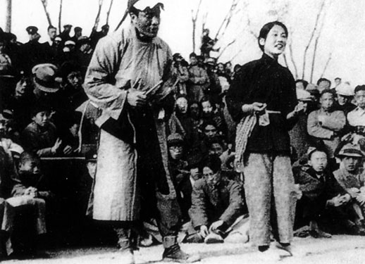 1937年街头剧《放下你的鞭子》在国民党军警包围下演出