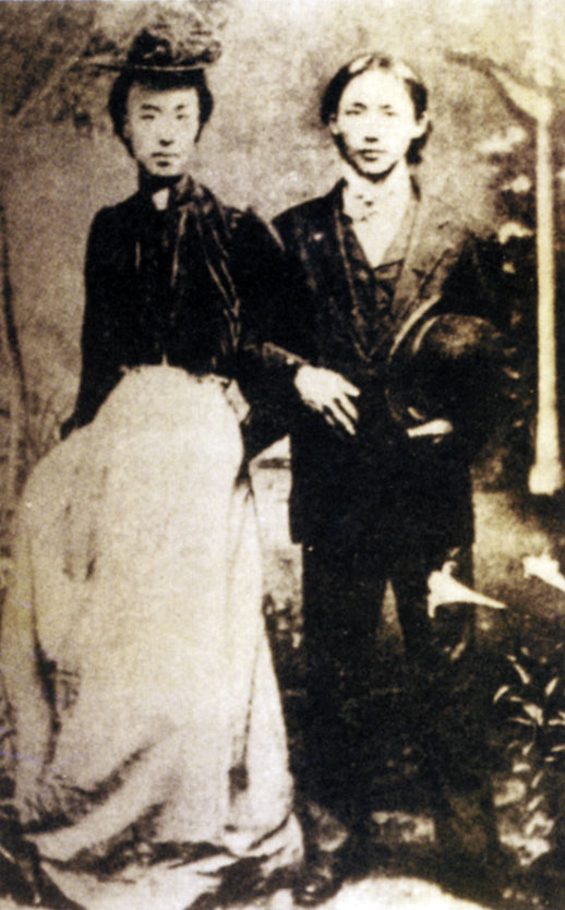 1905年,李叔同(左)与曾孝谷在春柳社演戏时的合影
