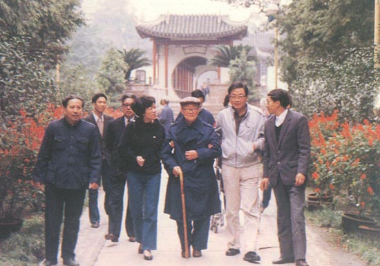 巴金在百花潭公园参观根据小说《家》而设计的“慧园”