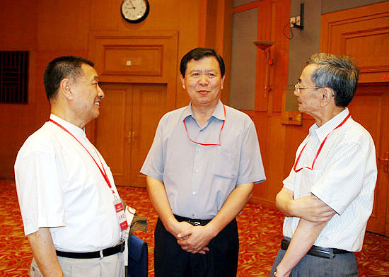 李牧(中)和吴贻弓(右)、丁荫楠亲切谈话