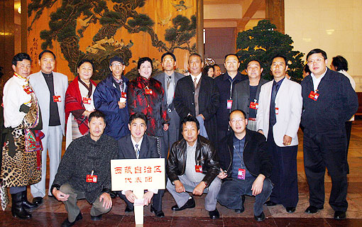 出席第八次文代会的西藏自治区代表团在人民大会堂。