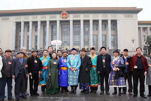 出席第八次文代会的内蒙古代表团在人民大会堂前。