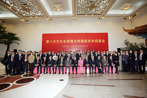 出席欢迎宴会的中国文联领导和港澳台特邀嘉宾、内地艺术家合影。