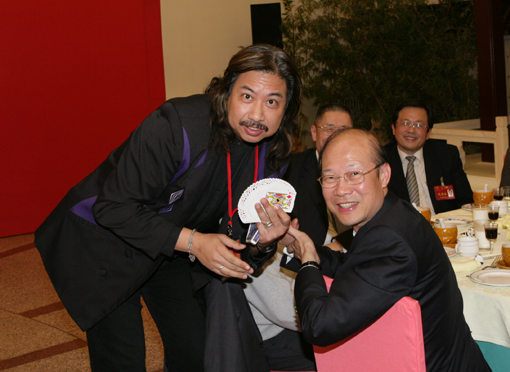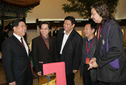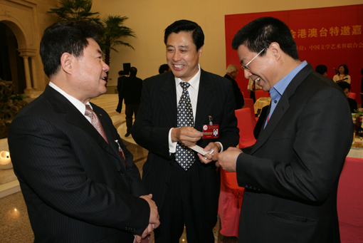 中国文联副主席胡振民与港澳台特邀嘉宾、内地艺术家在一起。