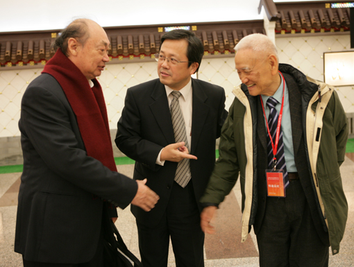 徐沛东、董伟与特邀嘉宾李扬在交流。