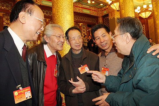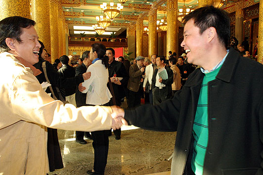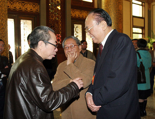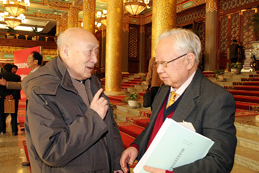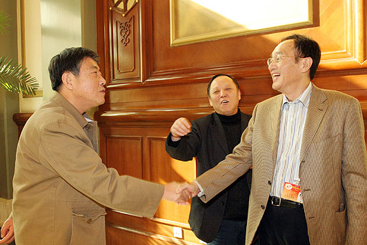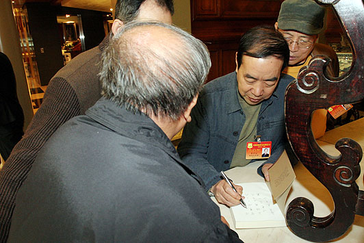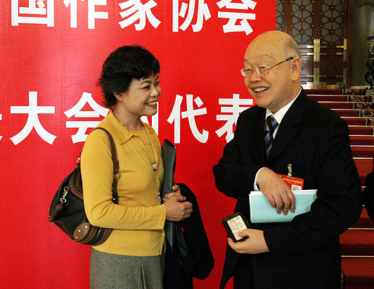 三作家切磋交流。左一:谈歌,左二:郑伯农