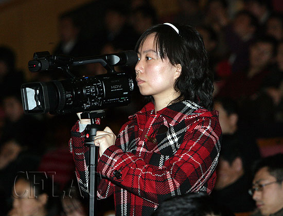 本网摄像工作人员张悦在现场认真工作