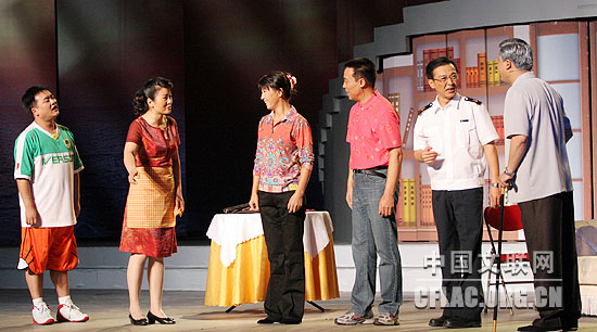 王强、郑卫莉、巴宁、储智博、闫学晶和张泳表演情景短剧《生日》
