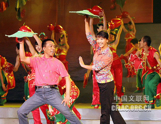 闫学晶和储智博表演情景歌舞《欢天喜地摘樱桃》