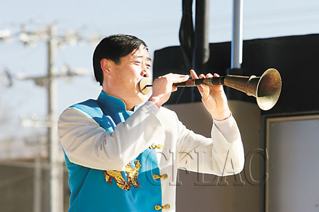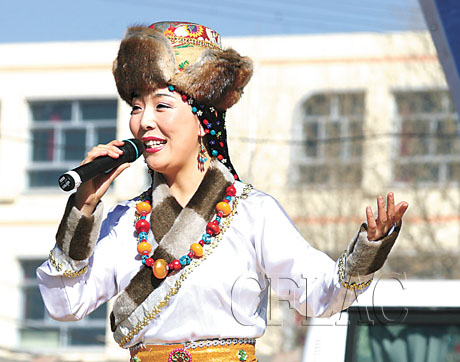 丹麻镇是以藏族和土族人口为主的村镇。演出前,村民们身穿民族盛装,为艺术家送上洁白的哈达、飘香的青稞酒。丹麻镇镇长常华说,丹麻镇有两万多人口,有一半多都来观看演出了。演出中,郭碧川的朗诵《西去列车的窗口》让人感怀;刘笑宇的《疼爱妈妈》、更太吉的《天路》、陈霞的《刺绣阿姑》、青梅永藏的《青藏高原》悦耳动听,歌唱了人间真情和青藏高原的新变化;单洪彬的唢呐《大姑娘爱》、阎福兴的乐器演奏《贺庆什锦》、郭文超的锯琴独奏《在北京的金山上》、马骏的花儿《老爷山上的刺梅花》技艺精湛,散发出民间艺术的芬芳;屈巧哲的秦腔《赶坡》、程丽雪的京剧联唱字正腔圆,展现了民族艺术的魅力;罗秉松的魔术变幻神秘,透射出迷人的魅力。演出结束后,村民们久久不愿离去,一直目送艺术团的车辆离开丹麻镇。在演出同时,李有来、柴京津、井汉升、姚中宝等书画家来到了村民家中,为他们义务书写春联。