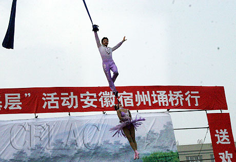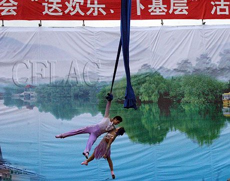 济南市杂技团吴长征和张璐艺表演杂技《空中彩绸》