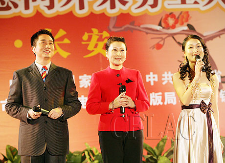 张凯丽(中)郑强(左)黄晓丽三位主持人主持节目