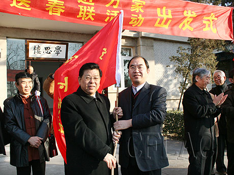 中国文联党组书记、副主席胡振民为书法家们授旗