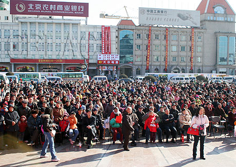 书法家赠春联吸引了大量的村民