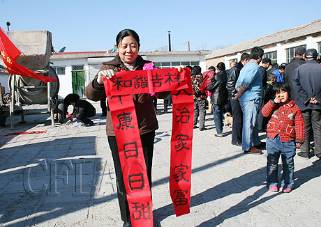 村民展示刚喜得的春联