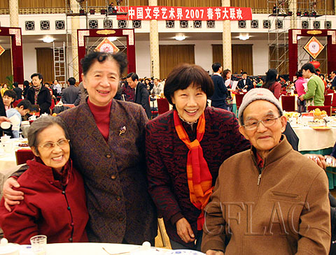 徐肖冰、白淑湘、常沙娜、侯波(右起)四位艺术家在一起。中国文联网 康伟/摄