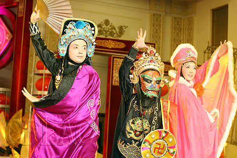 何洪庆、于丹和陈徐表演川剧《变脸》