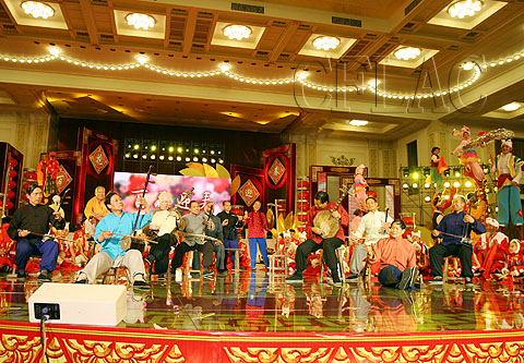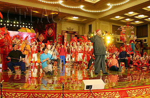 陕西省华阴市华山老腔艺术团表演华阴老腔《三秦风采》。嘉宾:李琦。中国文联网 余宁/摄