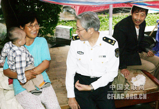武警政治部文工团艺术指导、曲艺家张保和深入百姓中采访。中国文联网 孟祥宁 摄