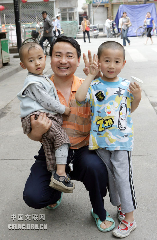 这是宝鸡市陈仓区抗震棚里的一家人。简易的抗震棚住起来很不舒服,但一家人却以苦为乐,其乐融融。中国文联网 孟祥宁 摄