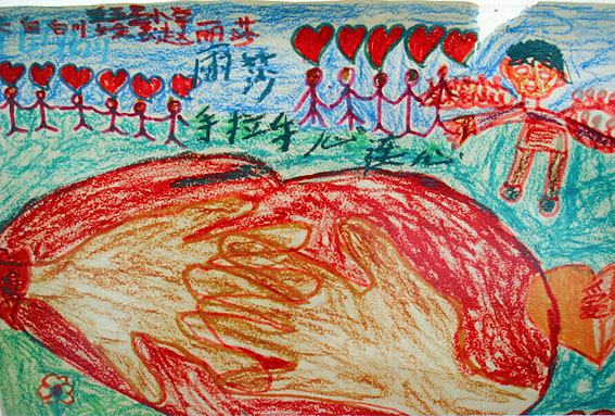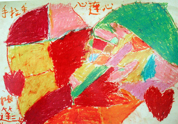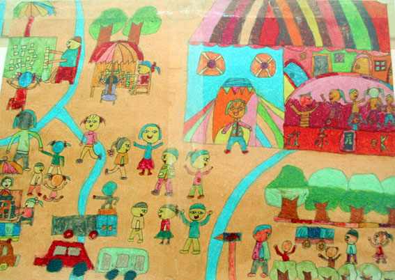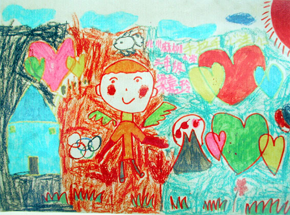 为了庆祝“六一”儿童节,绵阳九洲帐篷学校的孩子们纷纷拿起自己手中的画笔,描绘自己的心灵世界。一幅幅充满童真与想象的作品,让人们看打孩子们对美好生活的向往。(中国艺术报(中国文联网)赴四川抗震救灾一线采访组摄于绵阳九洲帐篷学校)
