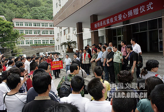 中国文联向陕西略阳灾区捐赠仪式现场。中国文联网 孟祥宁 摄
