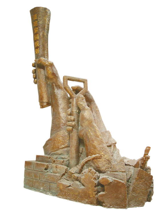 在本次大赛获金奖的5件作品中,有两件作品来自四川震区。地震发生时,获得金奖的四川雕塑家、城市景观设计师徐松涛正在赶往汶川县城的路上,当时他怀里揣着的正是受汶川县委书记所托而做的汶川城市发展规划图。“地震发生的一瞬间,我眼前很多车辆顷刻间被毁坏,而我的车后部也被石头砸中。我的一生中从来没有一个时刻像那时一样,离死亡如此之近。”在地震发生之后,徐松涛首先想到的就是第一时间联系上汶川的领导。他说:“后来我联系上了汶川县的领导,他们告诉我,党中央非常关心、重视汶川的灾后重建工作,他对我说,你要加倍地努力工作,我们建设汶川的美好蓝图决不会因为这一场地震就搁置了;相反,正是因为这一场天灾,我们更要把这个蓝图描画得更漂亮,实施得更经典!”