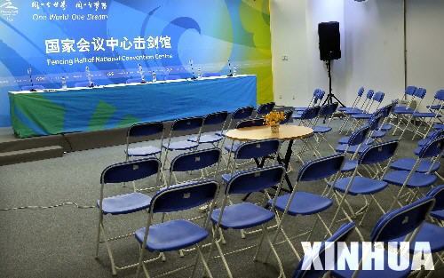 这是5月15日拍摄的国家会议中心击剑馆新闻发布厅。 新华社记者王颂摄