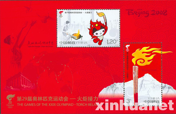 国家邮政局定于2008年3月24日发行《第29届奥林匹克运动会--火炬接力》纪念邮票1套2枚,小全张1枚。详情如下: