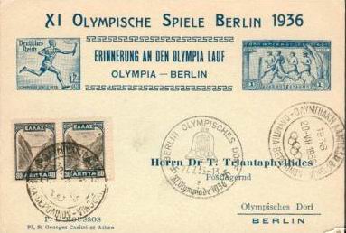 虽然在1928年第九届奥运会举办的时候,组委会就举行了点燃火炬和圣火接力传送活动,但直到1934年,国际奥委会才正式决定从第11届奥运会起举行圣火仪式。从1936年第11届柏林奥运会开始,每届奥运会前,在奥林匹亚的赫拉神庙遗址前都要举行庄重的点火仪式,国际奥委会、奥运会主办地和当地的官员都要出席。在现代奥运会的首次火炬接力活动中,“现在奥运之父”顾拜旦亲临点火仪式,并发表了演说。为了纪念此次奥运火炬接力活动。柏林奥运会组委会曾经制作过一枚奥运火炬接力实寄封(上图)。
