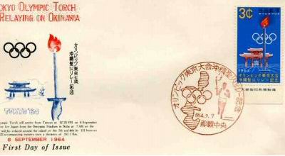 根据国际奥委会的有关规定,奥运主办国有权设计不同的火炬接力方案,常见的有汽车、火车、飞机等。2000年悉尼奥运会组委会成功地进行了世界上第一次水下的奥运火炬传递,同时组委会也让它重新回到了1956年墨尔本奥运会的主体育场,使得两届不同的奥运会圣火到达了同一个体育场,这在现在奥运会的历史上是非常罕见的。但不管是哪种特殊的方式,跑步传递奥运火炬总是不可缺少的,因此在各国发行的奥运火炬接力邮品中,最多展现的还是举着火炬跑步的运动员。图4为1964年东京奥运会期间的奥运火炬接力纪念封。