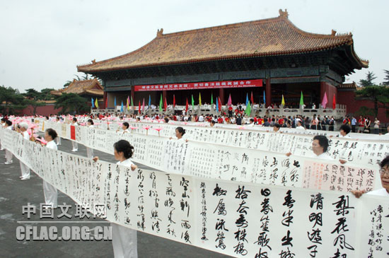 现场书法长卷展示。中国文联网 彭宽 摄