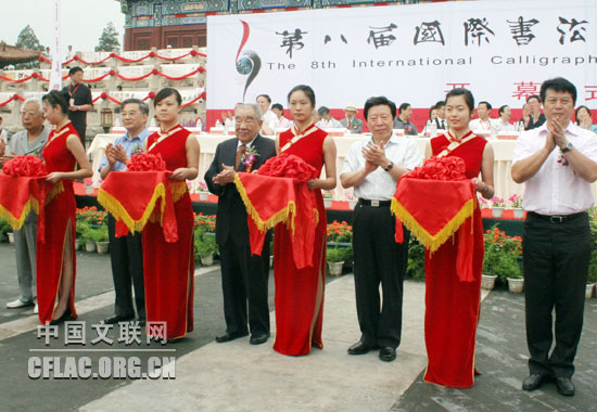 作为“相约北京—2008”系列活动之一,6月28日,由中国文联、中国书协、北京市文联主办的第八届国际书法交流大展在北京劳动人民文化宫太庙开幕。