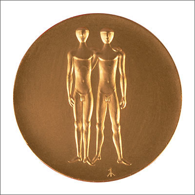 奖牌背面是宙斯和勒达的孪生子,代表体育比赛和友谊的赞助者。奖牌的设计者是包豪斯建筑学派的最后代表人物之一、德国人格哈德·玛克斯。