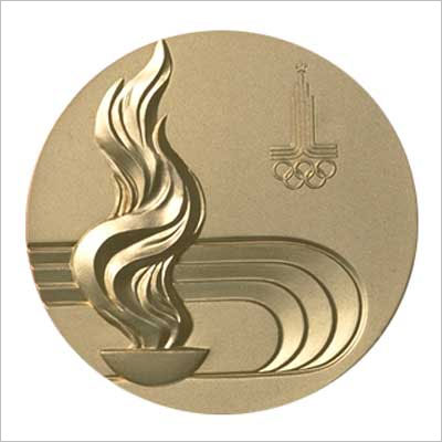 奖牌正面是表示胜利的传统奥林匹克标志:高举月桂花冠的胜利女神奈基。奖牌正面右下角是一座大型竞技场的片断,上方用西里尔文字写着“1980年第22届莫斯科奥运会”。