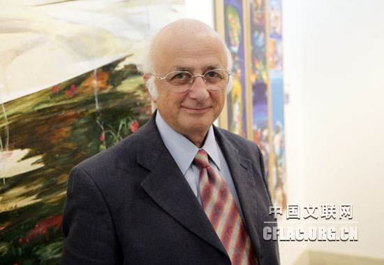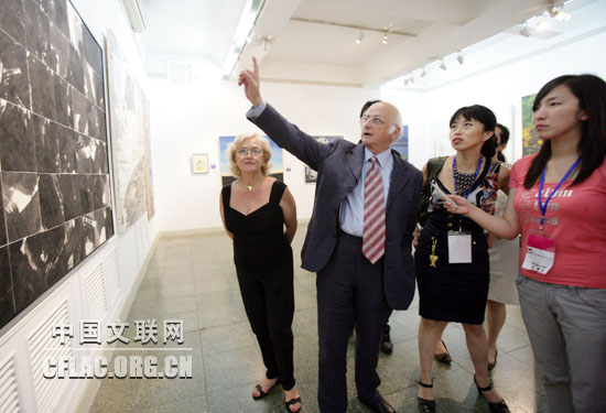 7月9日下午,第三届中国北京国际美术双年展分场馆展览在中央美术学院陈列馆开幕。图为国际策展人温琴佐·桑福在展览现场。中国文联网 孟祥宁 摄