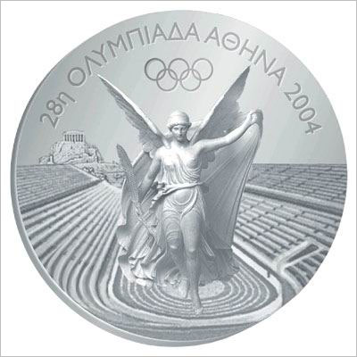 自1928年阿姆斯特丹奥运会以来,奖牌正面的设计首次修改,以反映希腊特色。从此以后,所有奥林匹克奖牌都将反映希腊特色,因为它是奥运会的起源和复兴之地。从1928年阿姆斯特丹奥运会到2000年悉尼奥运会,颁给运动员的奖牌上刻的都是胜利女神奈基的坐像。而从2004年雅典奥运会开始,奖牌上的奈基站了起来,而且插上翅膀,飞向体育场,把胜利带给最优秀的运动员。组委会选择的奖牌图案是潘那辛纳科体育场,那里是1896年现代奥运会的发祥地。