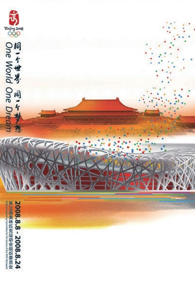 18日,北京奥运会、残奥会官方海报及官方图片在奥运主新闻中心发布,海报分为主题海报、人文海报、体育海报三类。其中,北京奥运会主题海报选用了中国山水画的创意,凸显中国味道。